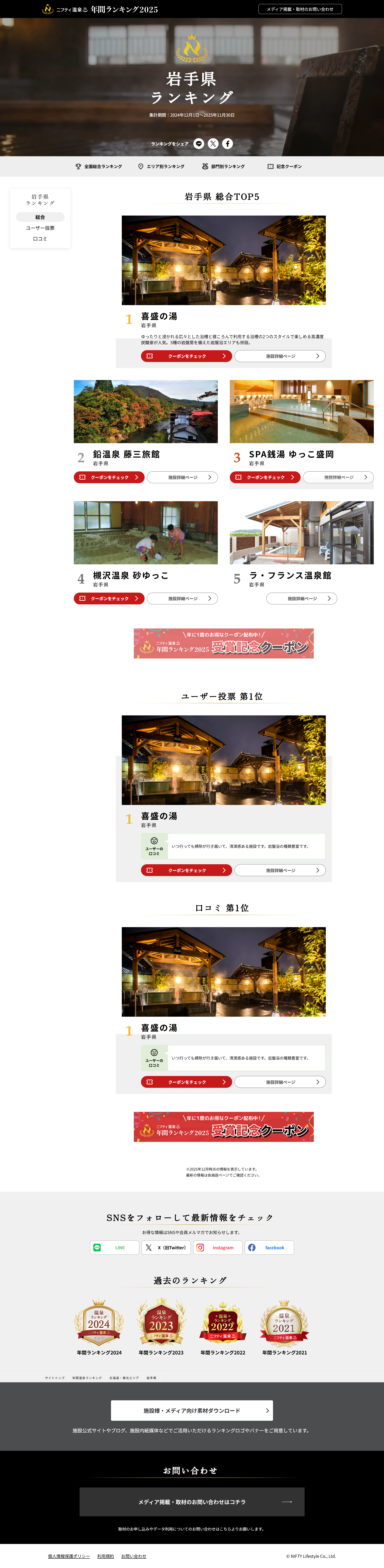 『ニフティ温泉 年間ランキング2025』に掲載いただきました。